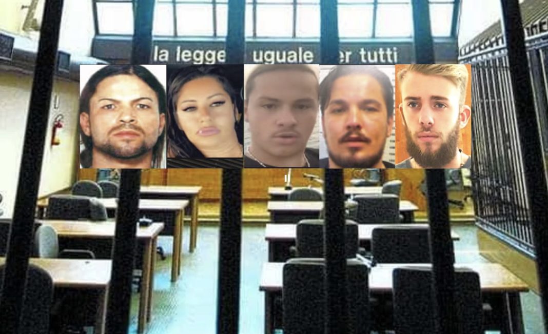 (Da sinistra inb alto il boss Massimiliano Esposito, la moglie Maria Matilde Nappi e i figli Massimiliano Giuseppe Junior e Cristian e il pentito Michele Ortone)