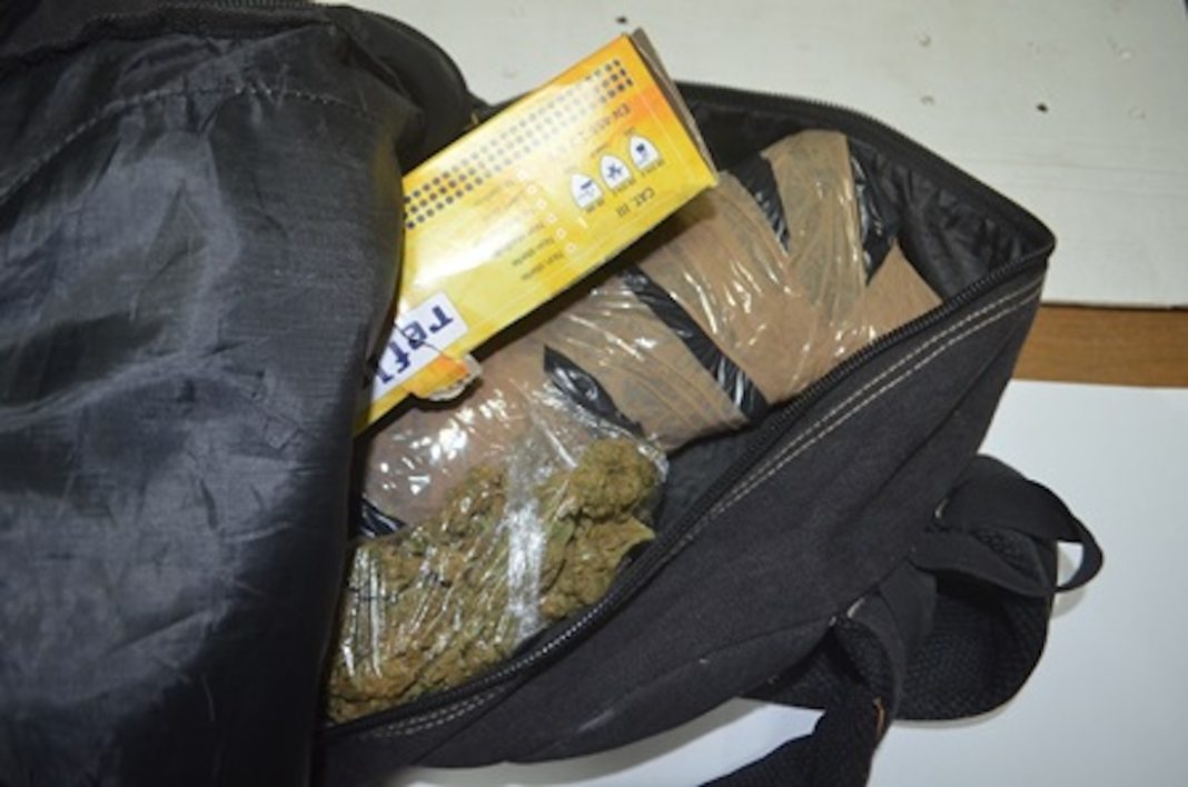 Insospettiti, gli agenti lo hanno fermato e controllato, scoprendo all’interno dello zaino 30 panetti di hashish, per un peso totale di 3 kg, e una busta contenente 105 grammi di cocaina.