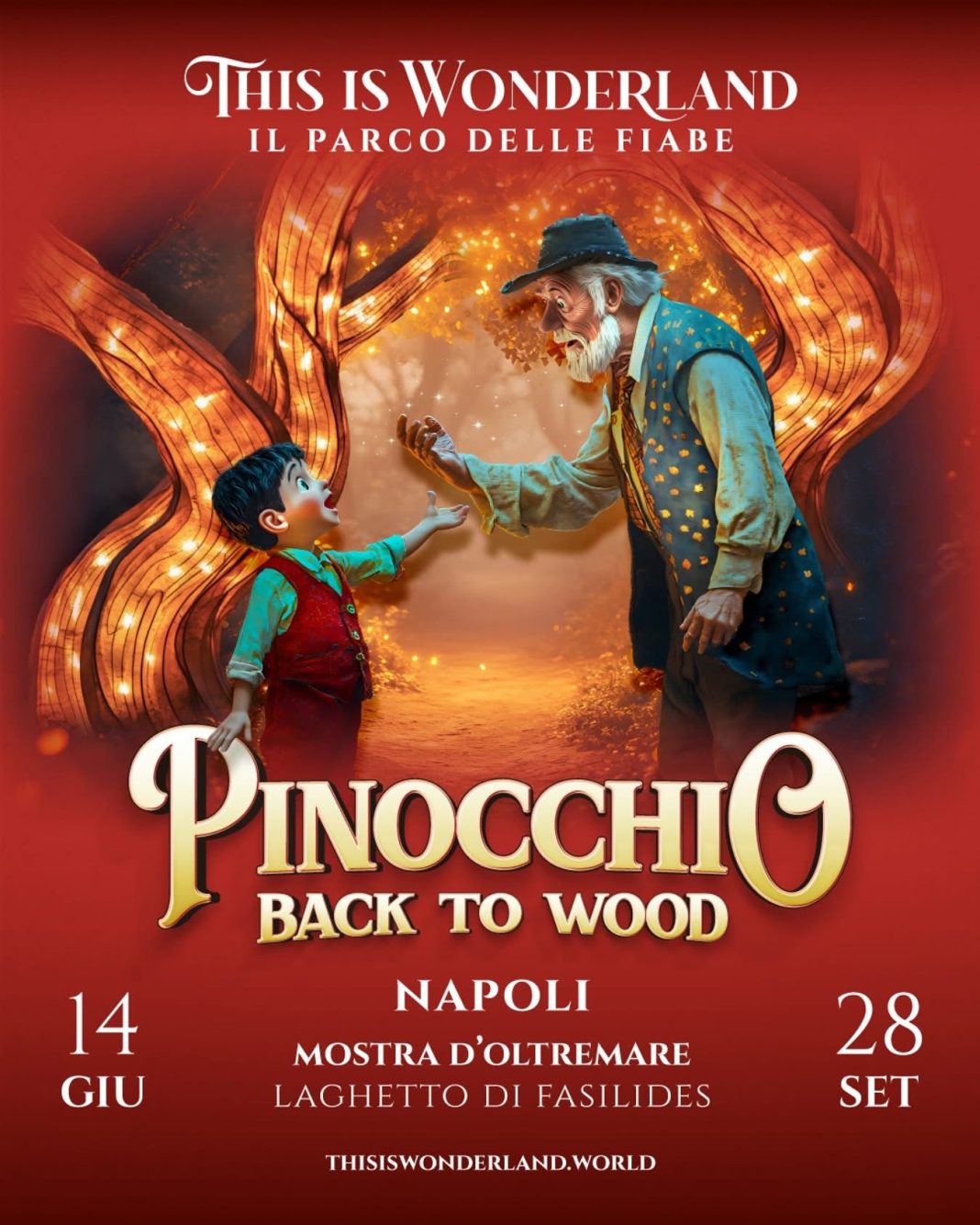 Dal 14 giugno al 28 settembre 2025, il cuore della Mostra d’Oltremare – precisamente il Laghetto di Fasilides – si trasformerà in un mondo incantato grazie a “This is Wonderland – Il Parco delle Fiabe”, che approda a Napoli con una nuova, sorprendente edizione: “Pinocchio, Back to Wood”.