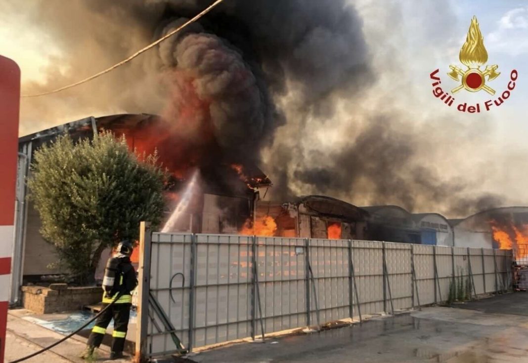 Il capannone, andato completamente distrutto, rappresentava un importante punto di riferimento per il commercio all’ingrosso della zona.