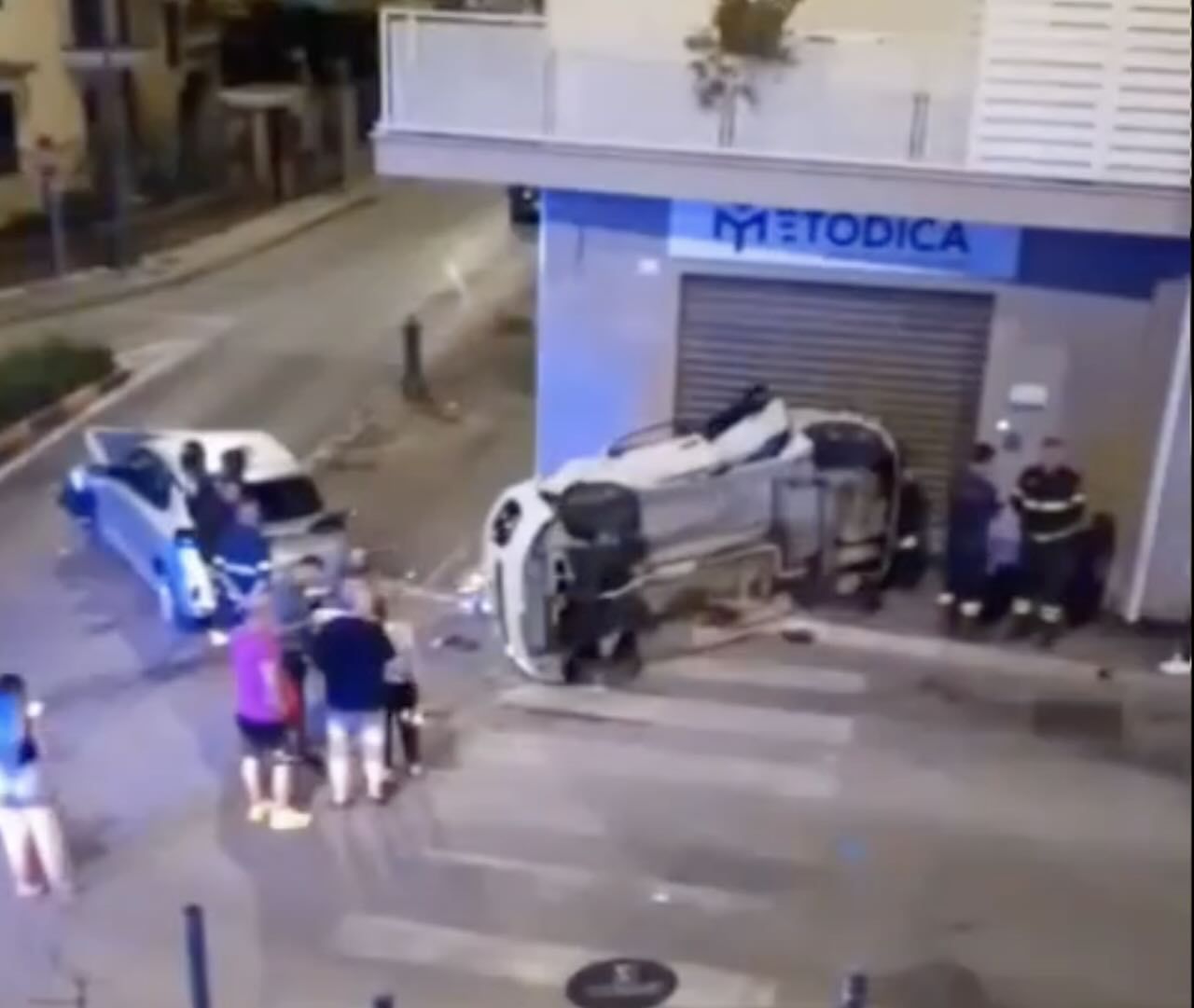 Sul posto anche i carabinieri per i rilievi. L’auto si è capovolta su se stessa schiantandosi contro la saracinesca dell’agenzia Metodica, accreditata dalla regione Campania, causanao anche danni.