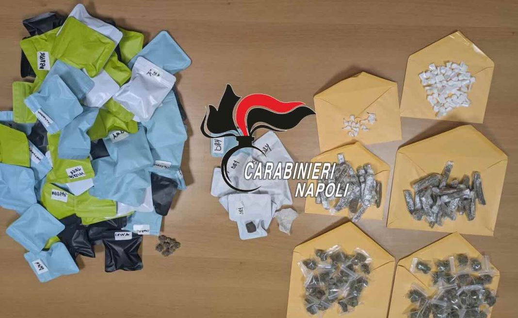 A chiudere la giornata, un colpo significativo al mercato dello spaccio. I militari hanno setacciato le cantine di un complesso residenziale nel rione Sant’Alfonso, il “Connolo”. Nascosto in un sotterraneo, è stato rinvenuto quasi un chilo di droga già suddivisa in dosi: hashish, marijuana, cocaina e crack. Un piccolo arsenale dello spaccio che, una volta immesso sul mercato, avrebbe fruttato circa 7.000 euro.
