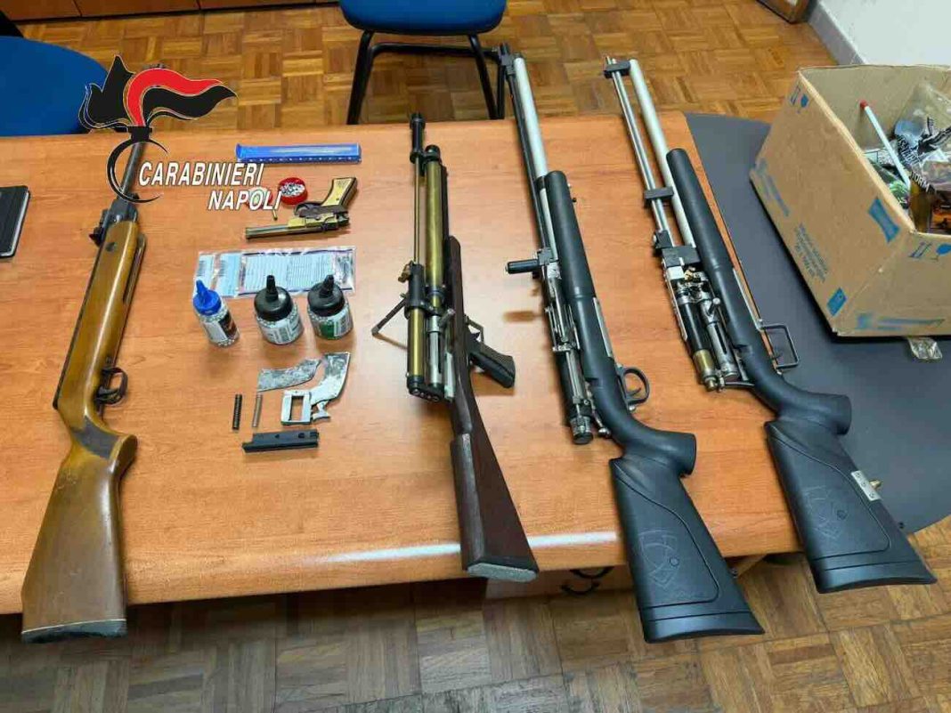 L’occhio esperto dei militari è caduto subito su una carabina Anschutz calibro 4.5, resa “clandestina” dall’abrasione del numero di serie. Accanto a lei, un arsenale fai-da-te: una pistola calibro .22, tre fucili ad aria compressa di fabbricazione artigianale, e poi ancora inneschi per proiettili, buste di pallini di ferro e componenti smontati, pronti per assemblare nuove armi.
