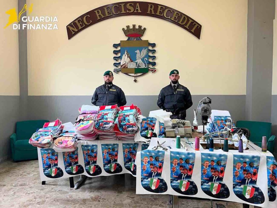 I prodotti riproducevano illegalmente i loghi della SSC Napoli e i disegni protetti da copyright dei principali brand dell’animazione internazionale, come Stitch, Barbie e Spiderman, destinati a ingannare i consumatori più piccoli.
