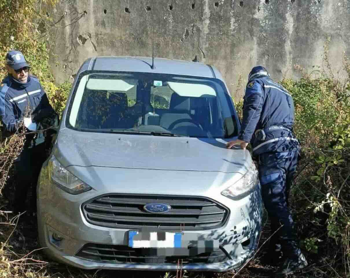 Tra i pilastri di cemento e la fitta vegetazione che negli anni ha divorato la struttura, i poliziotti hanno rinvenuto cinque veicoli: tre autovetture, un motociclo e un furgone, tutti accuratamente occultati tra i rovi per sfuggire ai controlli dall’alto e dalla strada.