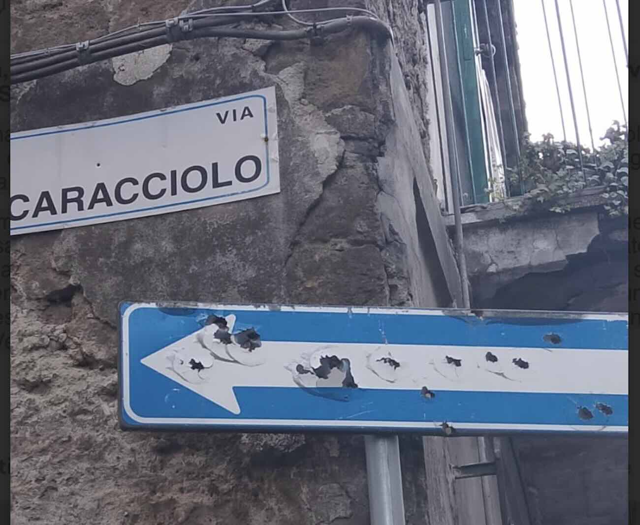 Afragola si è svegliato il primo giorno dell’anno con un inquietante episodio ancora tutto da chiarire. La mattina di Capodanno, in via Caracciolo, un cittadino ha rinvenuto alcuni bossoli sull’asfalto e, poco più avanti, la segnaletica stradale visibilmente danneggiata da colpi d’arma da fuoco.