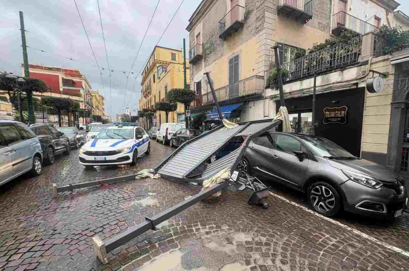 L’episodio si è verificato lungo corso Vittorio Emanuele, in una zona frequentata e non distante da edifici scolastici, a poche centinaia di metri dal confine con Ercolano. Secondo una prima ricostruzione, una folata particolarmente violenta avrebbe sradicato il gazebo dai punti di ancoraggio sul balcone. In casa, al momento dell’accaduto, non ci sarebbe stato nessuno.
