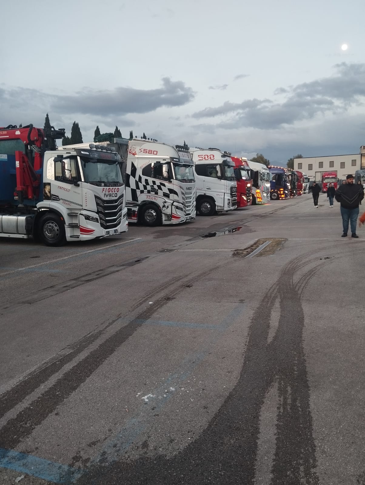 Il raduno, nato in modo informale dal passaparola tra colleghi e amici, si sta svolgendo in maniera ordinata e partecipata. I mezzi pesanti parcheggiati nell’area mercato fanno da cornice a un momento carico di emozione, dove il ricordo di Raffaele unisce persone arrivate anche dai comuni vicini.