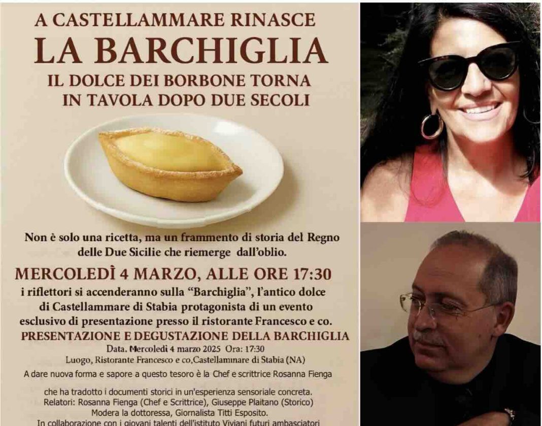 La chef e scrittrice stabiese Rosanna Fienga porterà in scena la storia gastronomica della città, presentando la barchiglia, un dolce antico di cui parlava anche Ferdinando di Borbone nelle sue lettere alla seconda moglie.