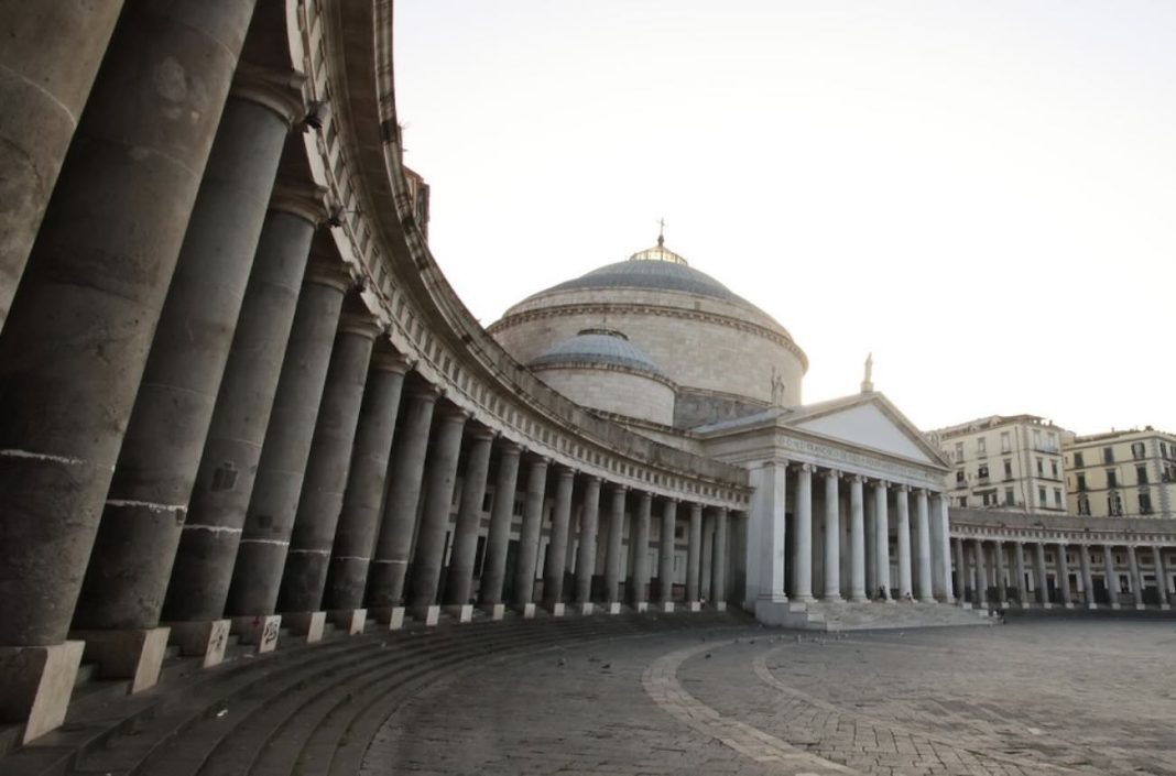 Napoli – Momenti di apprensione questo pomeriggio nel cuore di Napoli. Un frammento lapideo si è staccato dal monumentale colonnato della Basilica di San Francesco di Paola, piombando a terra sul lato delle rampe Paggeria.