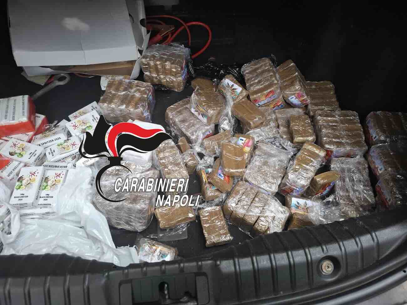 A tradire il 42enne è stata l’assoluta mancanza di precauzioni, unita al fiuto dei militari dell’Arma. Fermato a bordo di un’Alfa Romeo 159 durante un servizio di controllo del territorio, l’uomo nascondeva—si fa per dire—ben 27 chilogrammi di hashish.