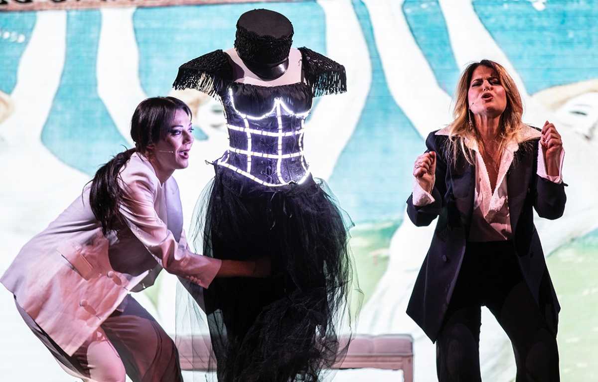 Sul palco, la Sarnelli non è sola: ad accompagnarla ci sono l’attrice Cinzia Cordella e il «Sirene Ensemble», un quintetto tutto al femminile composto dalla pianista Eunice Petito e da un quartetto d’archi. La scenografia, curata nei minimi dettagli e arricchita dai video artistici di Fabiana Fazio e dal disegno luci di Andrea Iacopino, trasforma il recital in un’esperienza multimediale dove la tradizione incontra l’electro-swing e il rap. Il racconto attraversa le storie di sciantose e cantautrici, mettendo alla berlina il maschilismo insito nei versi di ieri e di oggi, con le partecipazioni virtuali di Enzo Gragnaniello e Peppe Lanzetta.