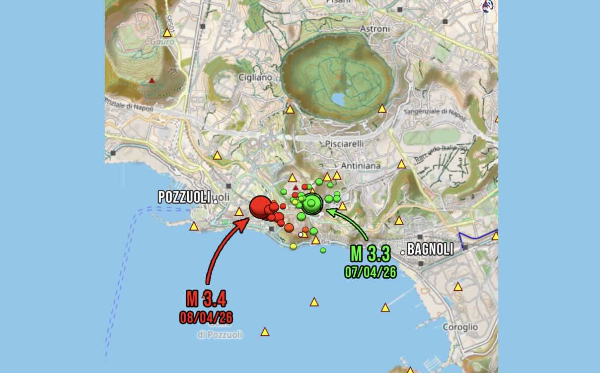 L’epicentro della scossa più forte è stato localizzato nei pressi della Solfatara, nel territorio di Pozzuoli, a una profondità compresa tra circa 0,9 e 1 chilometro. Un quadro che rientra nella dinamica del bradisismo che da tempo interessa l’area flegrea.